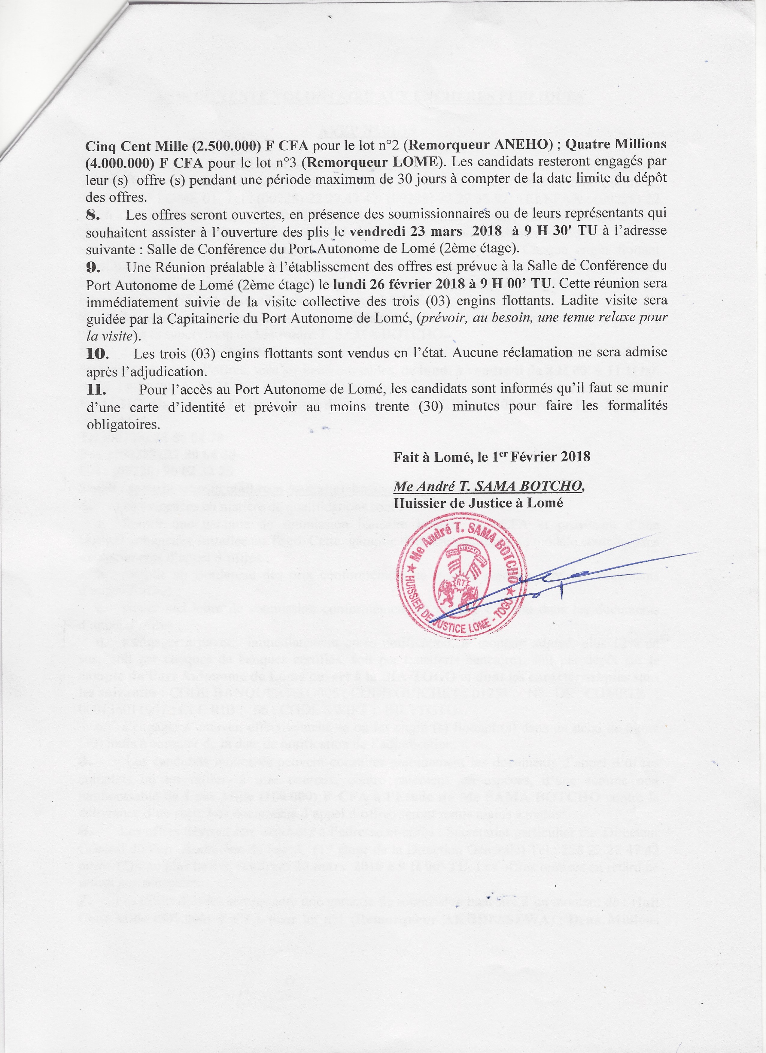 Tél: (+228) 22 27 26 27 / 22 23 78 00 / 22 27 47 42